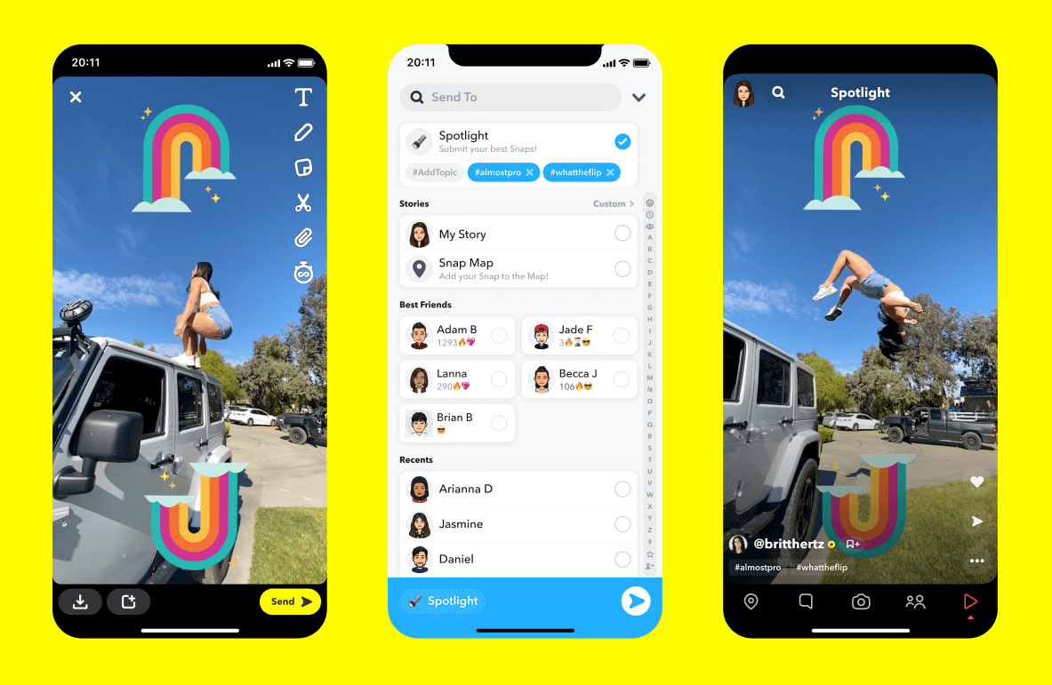 When Snapchat arrived on the scene, it was the first social platform to showcase disappearing stories and photo-focused messaging. They kept things fresh with the Snap Map, a Bitmoji collab, and a Discover section that features daily stories from media outlets. Now they’re adding a new tool to their arsenal with Spotlight, which features the best video Snaps on the platform for everyone to see!