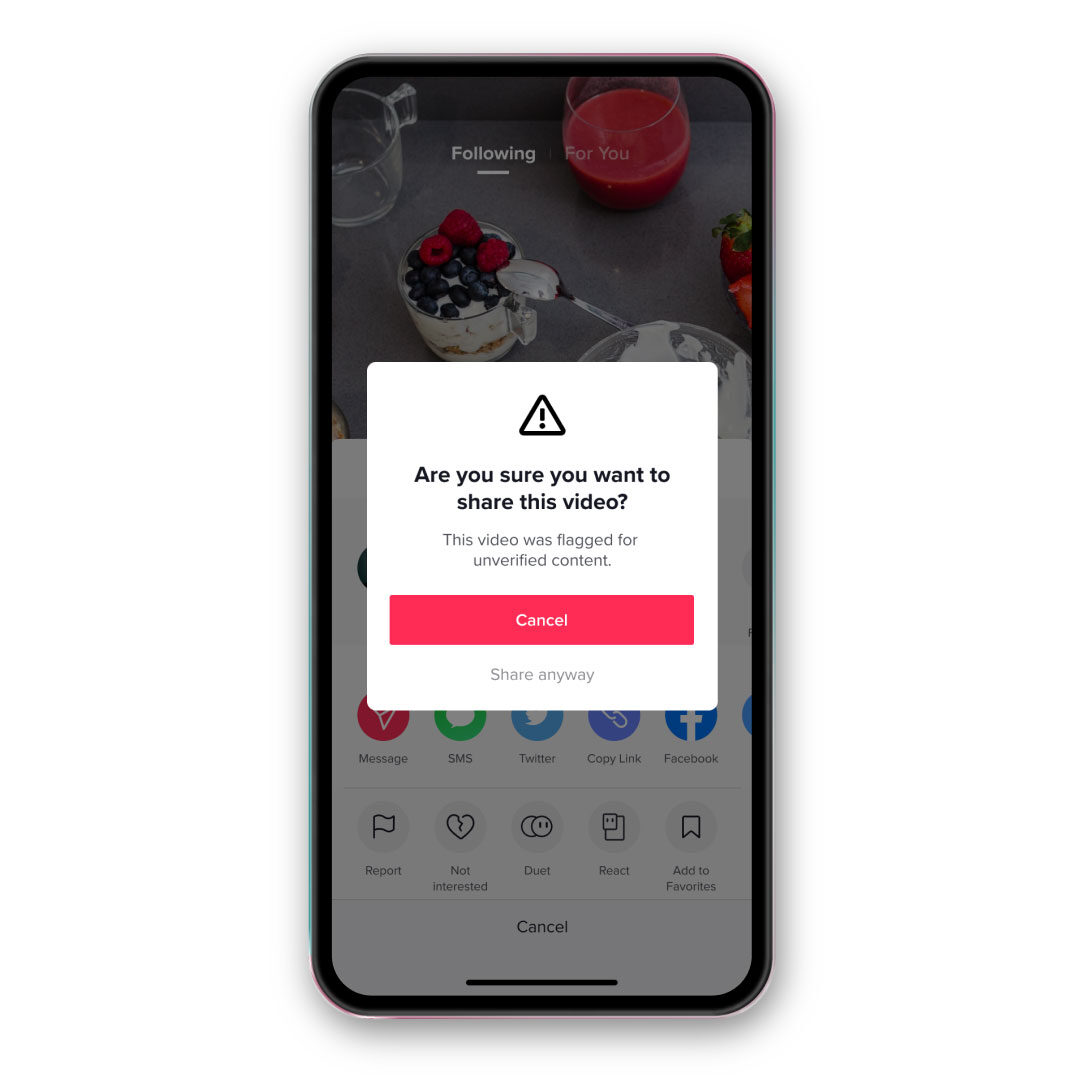 TikTok has created a flagging system to discourage unverified content on its platform. The company has already been removing content with false information in collaboration with fact-checkers. Now, videos with unverified information will display a warning banner across the top as they play. As a further step, these videos won’t be recommended on the ‘For You’ page, and users will be reminded that the content is unverified before sharing.